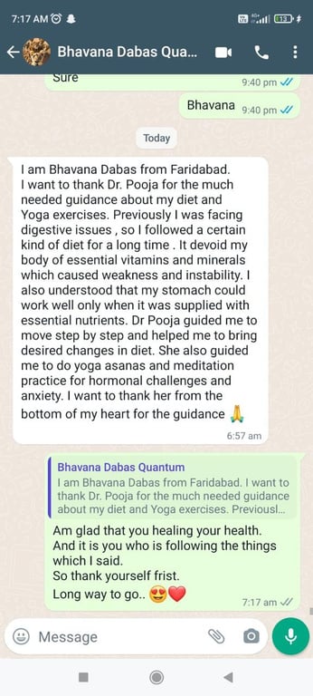 Dr. Pooja Patil, a highly ​qualified naturopath with ​a Bachelor of Naturopathy ​and Yogic Science (BNYS).
